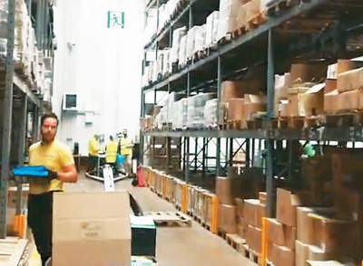 馮亞斌所在的意大利易賽法斯特國(guó)際電商物流有限公司員工在倉(cāng)庫(kù)擺放貨物。