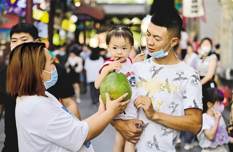 6月18日,呼和浩特市民在玉泉區(qū)通順大巷小吃街上品嘗椰子汁。當(dāng)日,2022年塞上老街音樂美食季在呼和浩特市玉泉區(qū)開幕。今年的音樂美食季活動(dòng)共分為阿拉坦汗廣場、大召前街等六大活動(dòng)區(qū)塊,推出啤酒節(jié)、美食季、快閃店、后備箱集市等八大主題活動(dòng),助力首府夜經(jīng)濟(jì)發(fā)展、夜消費(fèi)繁榮,活動(dòng)將持續(xù)到9月底。(記者 王磊 攝)