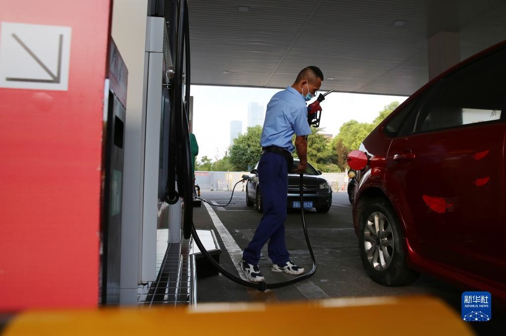 8月9日,江蘇南京一家加油站工作人員給汽車(chē)加油。新華社發(fā)(方東旭 攝)