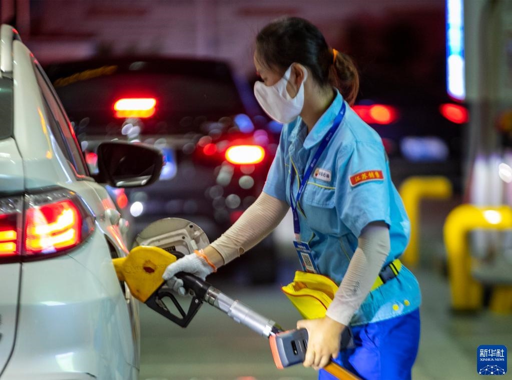 8月9日,江蘇無(wú)錫一加油站工作人員給汽車(chē)加油。新華社發(fā)(還月亮 攝)