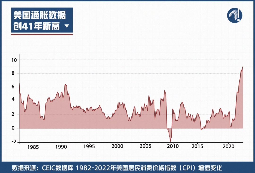 疫情期間,美國不僅以6.5%的經濟損失率(剔除宏觀經濟政策影響之后),位居調查中涉及的各國前列。更直接的表現,就是美國通脹水平創(chuàng)41年新高。
