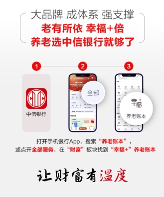 面對萬億規(guī)模個人養(yǎng)老金新藍海,銀行、基金、保險等各類型金融機構(gòu),正加速布局。作為國內(nèi)最早推出年長客戶專屬服務(wù)的商業(yè)銀行,中信銀行始終關(guān)注并積極落實“應(yīng)對人口老齡化”的國家戰(zhàn)略,打造了包含“一個賬戶、一套產(chǎn)品、一個賬本、一套服務(wù)、一支隊伍、一份報告”六大支撐的養(yǎng)老金融服務(wù)體系,并推出“幸福+”養(yǎng)老賬本一站式養(yǎng)老金融服務(wù)平臺,以實際行動響應(yīng)國家號召、履行社會責任、助力第三支柱個人養(yǎng)老金制度實施落地。