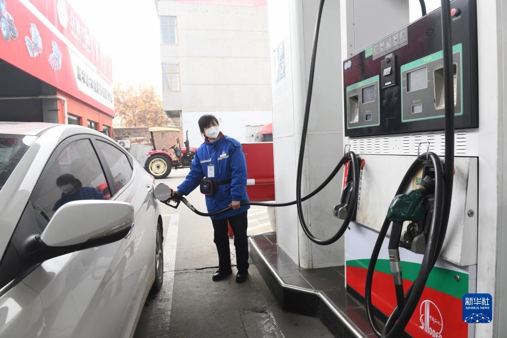 11月21日,河北省新樂(lè)市一家加油站的工作人員給汽車(chē)加油。新華社發(fā)(賈敏杰 攝)