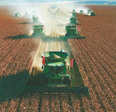 大型農(nóng)機(jī)在黑龍江省北大荒集團(tuán)九三分公司鶴山農(nóng)場高粱基地作業(yè)。 任寶吉攝