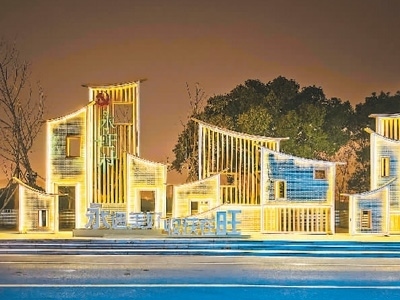 2022年12月28日,獲批全省“未來鄉(xiāng)村”稱號的浙江省寧波市鎮(zhèn)海區(qū)永旺村燈光璀璨。胡學(xué)軍攝(人民圖片)