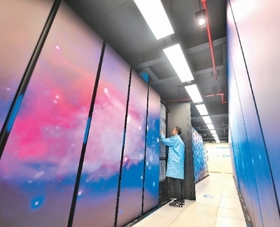 2023年2月14日,四川省成都市,國家超級計算成都中心的科研人員在巡檢機房設(shè)備。新華社記者 劉 坤攝