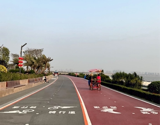 人民網(wǎng)東莞2月22日電 (記者趙雯 薛艷艷)濱海驛站坐落于廣東省東莞市濱海灣新區(qū),是東莞濱海長廊首個建成的重要節(jié)點,緊靠海岸線,南臨前海,隔海眺望南沙自貿(mào)區(qū)、中山翠亨新區(qū)。立于驛臺前,海風(fēng)習(xí)習(xí)拂來,海天一線,日落降臨,浮光躍金。濱海驛站周邊建有廣場平臺、自行車道、沿海步道和園林綠化。濱海灣新區(qū)未來規(guī)劃建設(shè)一條長約40余公里的濱海長廊,以“運動廊+人文鏈+活力岸”為建設(shè)目標(biāo),打造生態(tài)海堤,不僅為游客提供親水體驗,同時也為鳥類、兩棲類動物提供生境及遷徙通廊。