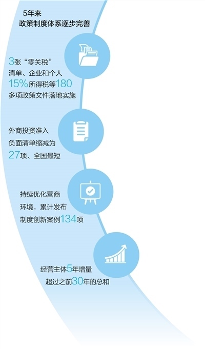 持續(xù)優(yōu)化的營商環(huán)境是海南自貿(mào)港建設(shè)的重要支撐。5年來,海南深入推進(jìn)營商環(huán)境建設(shè),持續(xù)打造法治化、國際化、便利化和公平、透明、可預(yù)期的營商環(huán)境。