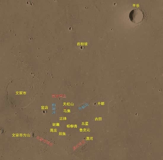 科學(xué)研究團(tuán)隊(duì)通過火星高分影像,識別了著陸點(diǎn)附近大量的地理實(shí)體,國際天文聯(lián)合會根據(jù)相關(guān)規(guī)則,將其中的22個地理實(shí)體,以中國人口數(shù)小于10萬的歷史文化名村名鎮(zhèn)加以命名。將中國標(biāo)識永久刻印在火星大地。