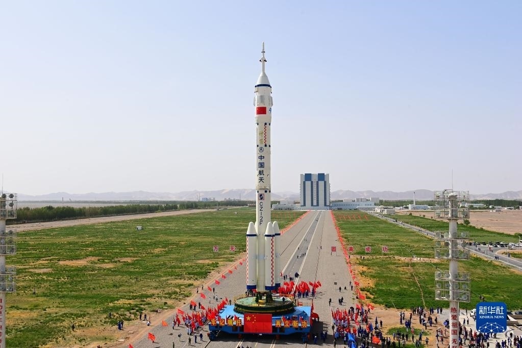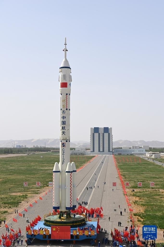 5月22日,神舟十六號載人飛船與長征二號F遙十六運(yùn)載火箭組合體在轉(zhuǎn)運(yùn)途中。新華社發(fā)(汪江波 攝)