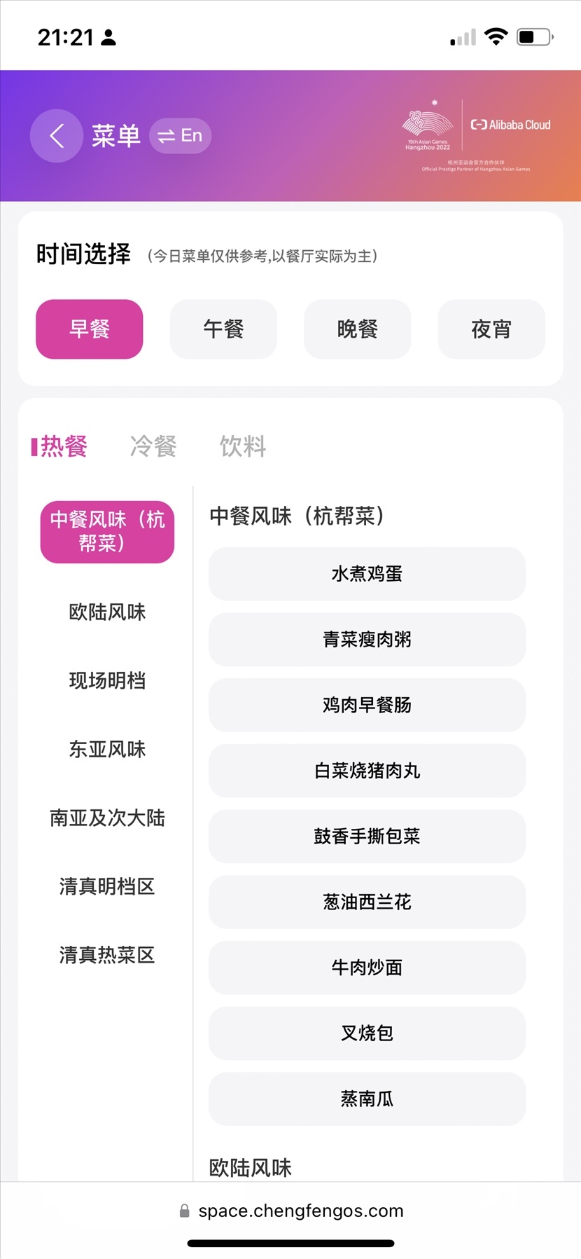 老鴨蘿卜湯、宋嫂魚羹、雪菜蒸鱸魚、東坡肉、京蔥爆牛肉……打開云上亞運村的 “云上通”小程序,各色餐食便可隨意選擇預(yù)約。不僅傳統(tǒng)中餐,“歐陸風(fēng)味”“東亞風(fēng)味”“東南亞及次大陸”各式特色餐食,也可根據(jù)個人喜好和時間安排進行性選擇。同時,還可以隨時查看餐廳的實時人流量。