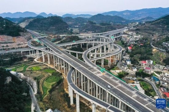 這是3月21日拍攝的貴黃高速公路延伸段馮家莊樞紐(無(wú)人機(jī)照片)。