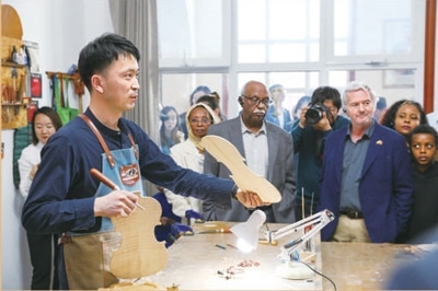 制琴大師莫拉西參觀提琴文化體驗(yàn)館。