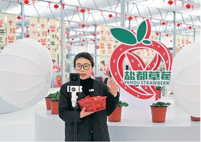 3月28日9點(diǎn),新民村的一座草莓大棚中,一場直播帶貨開始了。
