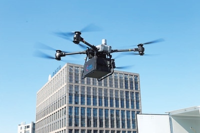 飛行在上海市北高新園區(qū)的載貨無人機(jī)。