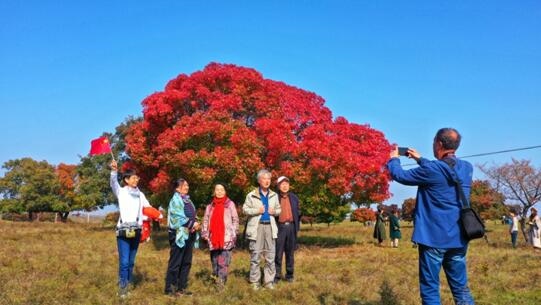 五角楓紅了,人們在來到這里載歌載舞慶豐收。梁永峰 攝