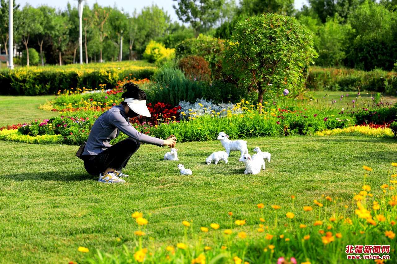 8月4日,呼和浩特市草原絲綢之路文化公園,一處280平方米的花境吸引眾多游人前來(lái)參觀(guān)打卡。