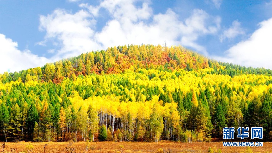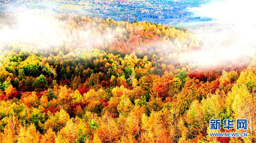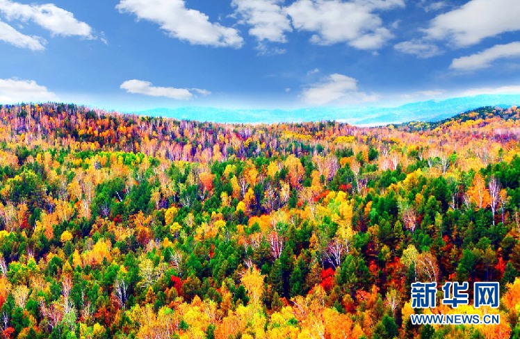 松樹(shù)林、白樺林、柞樹(shù)林和一片片混交林“染”成不同色彩,茫茫林海宛若一幅匠心獨(dú)運(yùn)的繽紛畫(huà)卷。(9月28日攝)新華網(wǎng)發(fā)(欒維敬 攝)