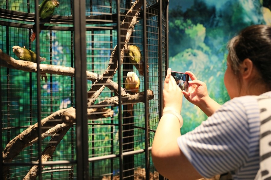 6月29日,《秘境仙蹤》——熱帶雨林主題展內(nèi)的鸚鵡