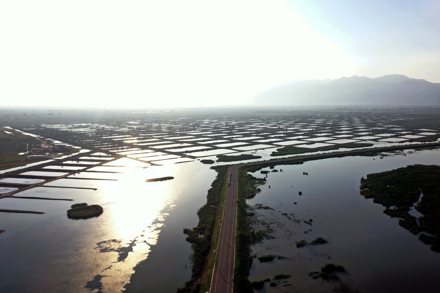 夏日的哈素海濕地,湖水清波蕩漾,水鳥(niǎo)嬉戲成群,山湖相映,一派生機(jī)。