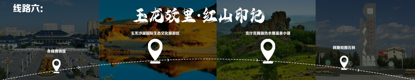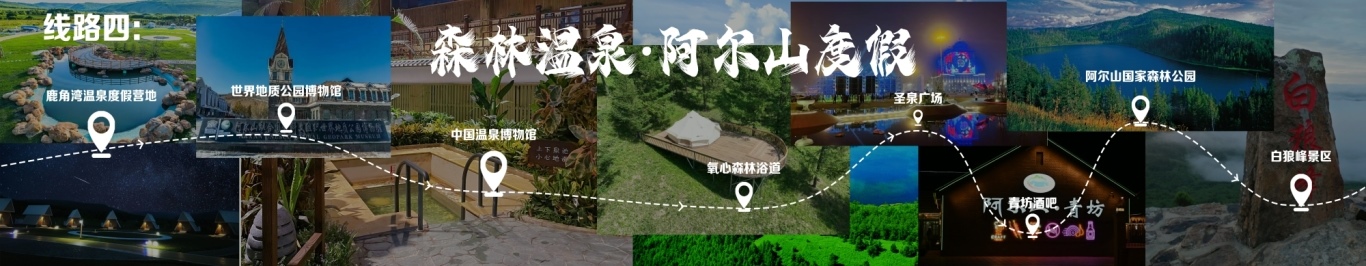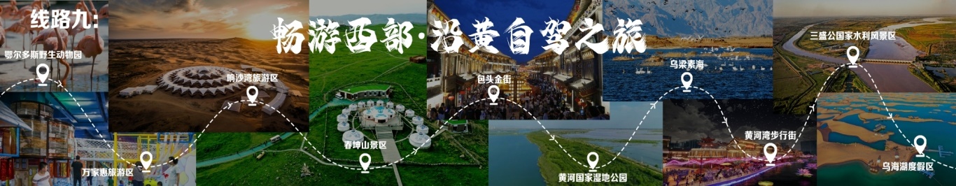 “一城看北疆?大美青城”四日游 行程由呼和浩特出發(fā),至哈達(dá)門高山草原旅游區(qū),至莫尼山非遺小鎮(zhèn),至大召歷史文化旅游區(qū),再至昭君博物院,再至奧威馬文化生態(tài)旅游區(qū),再至蒙草草博園,再至老牛坡紅色文化旅游區(qū),終點(diǎn)為老牛灣黃河大峽谷旅游區(qū)。 線路二 “醉美草原·呼倫貝爾”五日游 線路行程由海拉爾出發(fā),至呼倫貝爾大草原·莫爾格勒河景區(qū),至烏蘭山,至額爾古納濕地,再至白樺林,再至呼和諾爾旅游區(qū),終點(diǎn)為呼倫貝爾古城旅游休閑街區(qū)。 線路三 “邊境風(fēng)情·環(huán)興安嶺自駕之旅”四日游 線路行程由烏蘭浩特出發(fā),至翰嘎利湖休閑旅游度假區(qū)出發(fā),再至紅花爾基樟子松林國家森林旅游區(qū),再至諾干湖旅游度假區(qū),再至扎賚諾爾猛犸旅游區(qū),終點(diǎn)為滿洲里市中俄邊境旅游區(qū)。 線路四 “森林溫泉·阿爾山度假”三日游 線路行程由阿爾山出發(fā),至鹿角灣溫泉度假營地,至世界地質(zhì)公園博物館,至中國溫泉博物館,再至氧心森林浴道,再至圣泉廣場,再至青坊酒吧,再至阿爾山國家森林公園,終點(diǎn)為白狼峰景區(qū)。 線路五 “勝境探秘·科爾沁草原”三日游 線路行程由通遼出發(fā),至科爾沁左翼中旗探訪哈民考古遺址公園,至珠日河草原旅游區(qū),再至科左后旗大青溝旅游區(qū),終點(diǎn)為庫倫旗銀沙灣旅游區(qū)。 線路六 “玉龍故里·紅山印記”三日游 線路行程由赤峰出發(fā),至赤峰博物館,至玉龍沙湖國際生態(tài)文化旅游區(qū),再至克什克騰旗熱水塘溫泉小鎮(zhèn),終點(diǎn)為阿斯哈圖石林。 線路七 “草原追夢·暢游錫林郭勒”三日游 線路行程由錫林浩特出發(fā),至貝子廟旅游景區(qū),至烏蘭烏臺旅游區(qū),至布林泉,再至野狼谷,終點(diǎn)為九曲灣景區(qū)。 線路八 “北京向西一步·草原避暑之旅”四日游 線路行程由北京出發(fā),至烏蘭哈達(dá)火山,至二連浩特國家地質(zhì)公園,至輝騰錫勒草原,至林胡古塞,再至集寧戰(zhàn)役紀(jì)念館,再至烏蘭察布之夜,終點(diǎn)為蘇木山旅游區(qū)。 線路九 “暢游西部·沿黃自駕之旅”五日游 線路行程由鄂爾多斯出發(fā),至鄂爾多斯野生動物園,至萬家惠旅游區(qū),至響沙灣旅游區(qū)。到達(dá)包頭,至春坤山景區(qū),再至包頭金街,至黃河國家濕地公園。到達(dá)巴彥淖爾,至烏梁素海,再至黃河灣步行街,再至三盛公國家水利風(fēng)景區(qū),終點(diǎn)為烏海湖度假區(qū)。 線路十 “沙漠傳奇·巴丹吉林沙漠探險之旅”四日游 線路行程由阿拉善出發(fā),至參觀越野e族阿拉善夢想沙漠汽車航空樂園景區(qū),至定遠(yuǎn)營古城旅游區(qū),至巴丹吉林沙漠景區(qū),再至額濟(jì)納旗東風(fēng)航天城旅游區(qū),再至居延海景區(qū),終點(diǎn)為胡楊林旅游區(qū)。