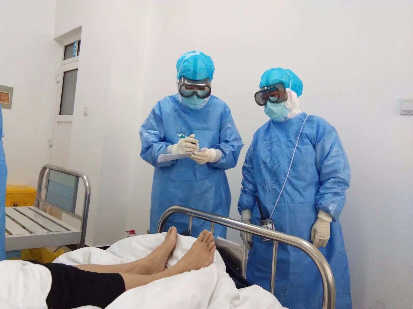 劉妍在疫情期間早起查房詢問患者情況