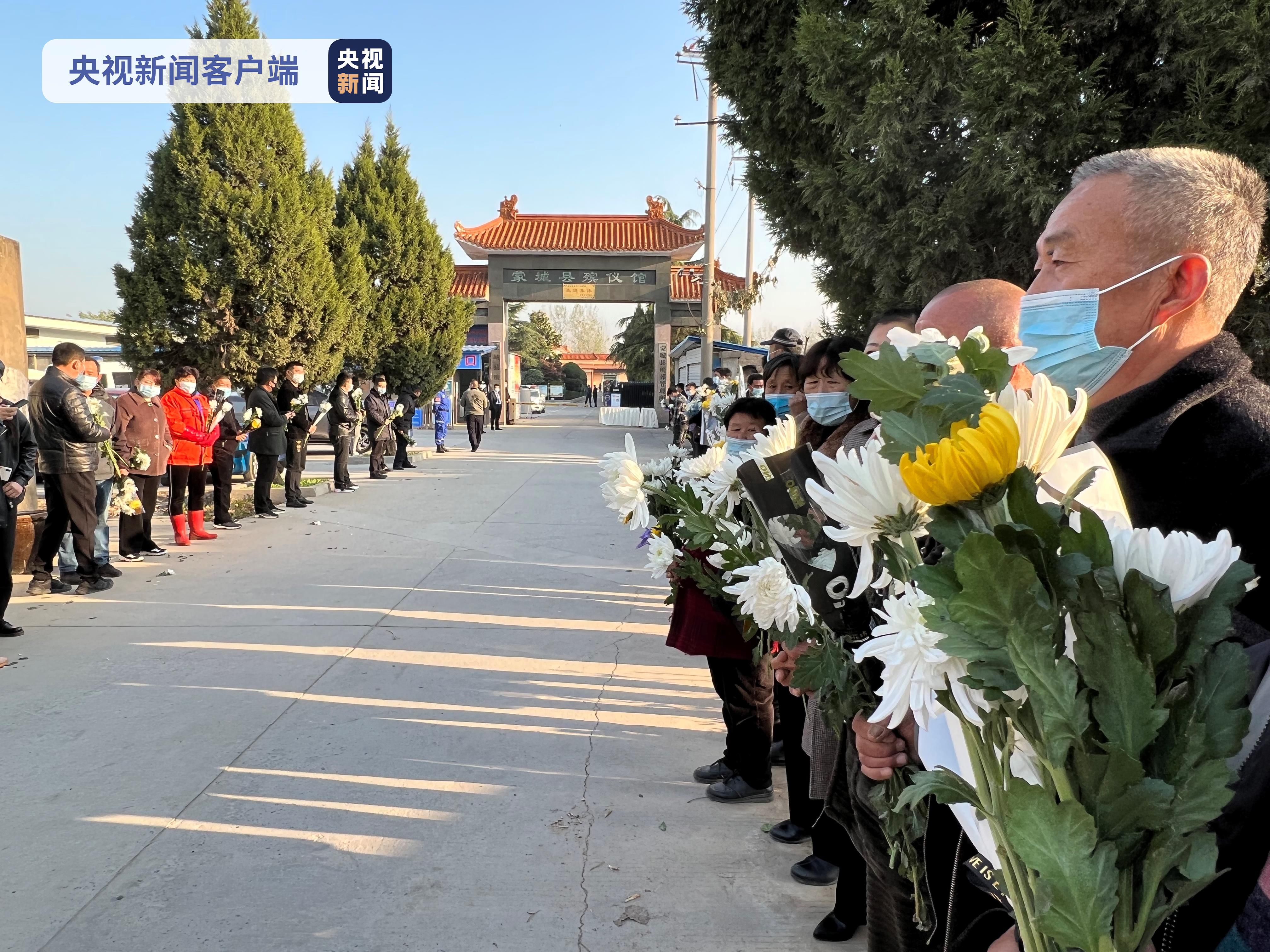 今天早上7時(shí)不到,總臺記者在現(xiàn)場看到,很多群眾就自發(fā)來到蒙城縣殯儀館的門口,大家手持鮮花,守候在通往殯儀館的道路兩旁。送別的鮮花上,大家用卡片寫著“英雄,一路走好”等,寄托對犧牲消防員的哀思。