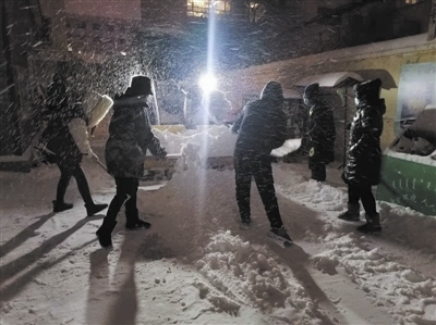 下雪期間,明仁街道再次啟動應(yīng)急除雪預(yù)案,街居干部和除雪機(jī)械全部到崗,小區(qū)物業(yè)、沿街商戶、居民群眾也被發(fā)動起來,除雪大隊(duì)化整為零,分赴重點(diǎn)片區(qū)和社區(qū),從早上7點(diǎn)到夜幕沉沉,不分晝夜迎戰(zhàn)風(fēng)雪。