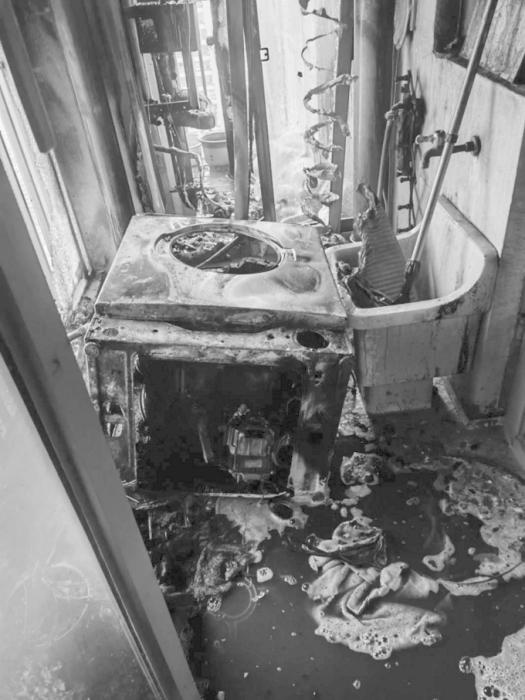 南京一居民家電吹風吹了一夜 洗衣機被燒得只剩下骨架