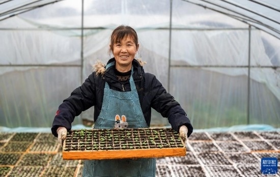 2月17日,村民在貴州省六盤水市六枝特區(qū)木崗鎮(zhèn)戛隴塘村育苗。