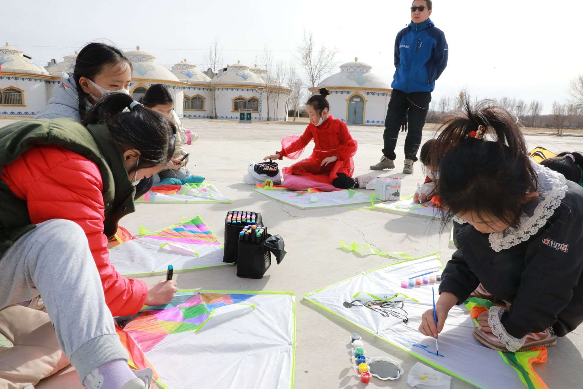 活動(dòng)現(xiàn)場(chǎng),呼和浩特市風(fēng)箏協(xié)會(huì)還特地準(zhǔn)備了20個(gè)空白風(fēng)箏,讓孩子們充分發(fā)揮想象力,動(dòng)手繪制自己喜歡的圖案。沐浴著溫暖的春光,小記者們拿出事先準(zhǔn)備好的水彩筆或者顏料,或趴或坐,認(rèn)真構(gòu)思,有的在風(fēng)箏上畫上了粉色的郁金香,有的畫上了振翅飛舞的蝴蝶,有的畫上了美麗的白雪公主,還有的涂鴉上喜歡的色塊,他們用五彩斑斕的顏色點(diǎn)綴創(chuàng)意,裝點(diǎn)自己喜歡的風(fēng)箏。一個(gè)小時(shí)的功夫,一個(gè)個(gè)獨(dú)具創(chuàng)意的風(fēng)箏在小記者們的巧手繪制中完成了。在郝偉老師的指導(dǎo)下,小記者們把風(fēng)箏安裝好,接上線,舉行了一場(chǎng)小型風(fēng)箏比賽。“哇,成功了,起飛了!”只見(jiàn)數(shù)十只色彩各異的風(fēng)箏隨風(fēng)飛上天空,你爭(zhēng)我趕,越飛越高,小記者們?nèi)滩蛔“l(fā)出歡呼聲,臉上洋溢著開心地笑容。