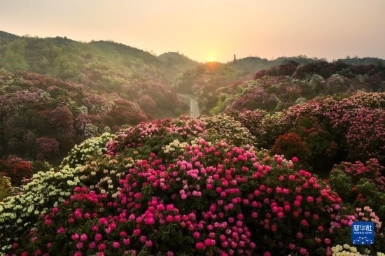 這是連片的百里杜鵑(無人機照片,2021年3月30日攝)。