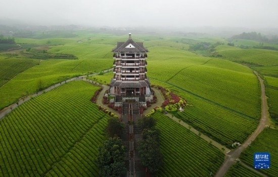 這是貴州省湄潭縣的“萬畝茶?!憋L光(無人機照片,2021年4月12日攝)。