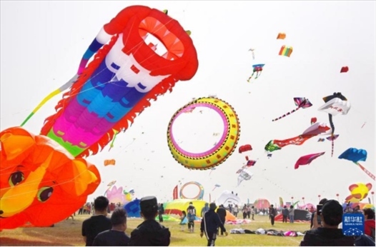 4月15日,第40屆濰坊國際風箏會開幕,來自59個國家和地區(qū)的600多名風箏愛好者云集山東濰坊,比試風箏扎制水平和放飛技藝。