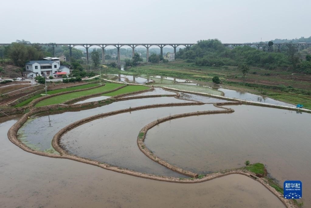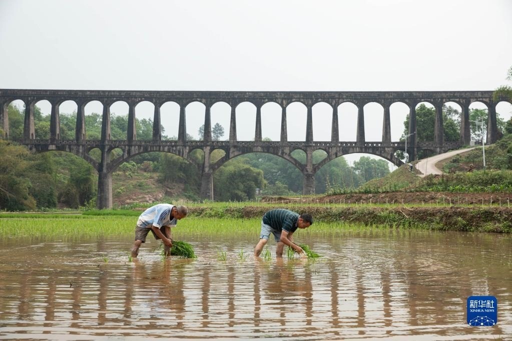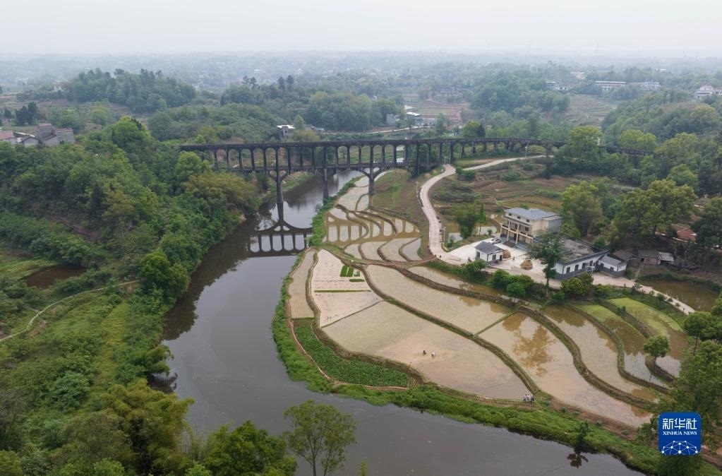 目前,四川省瀘縣正值插秧時節(jié),有“人工天河”之稱的瀘縣引水渡槽越過山丘、穿過農(nóng)田,仍在引水灌溉中發(fā)揮重要作用。