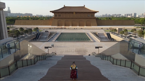 一下火車,乘坐電動(dòng)扶梯從西安站北廣場(chǎng)出站,氣勢(shì)雄渾的大明宮國(guó)家遺址公園丹鳳門便出現(xiàn)在眼前。
