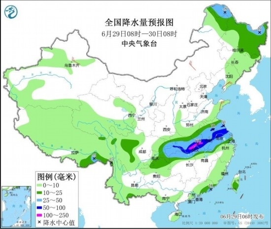 圖4 全國降水量預報圖(6月29日08時-30日08時) 圖自中央氣象臺網(wǎng)站