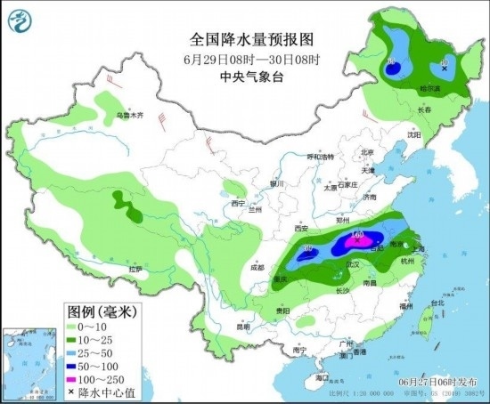 圖4 全國降水量預報圖(6月29日08時-30日08時) 圖自中央氣象臺網站