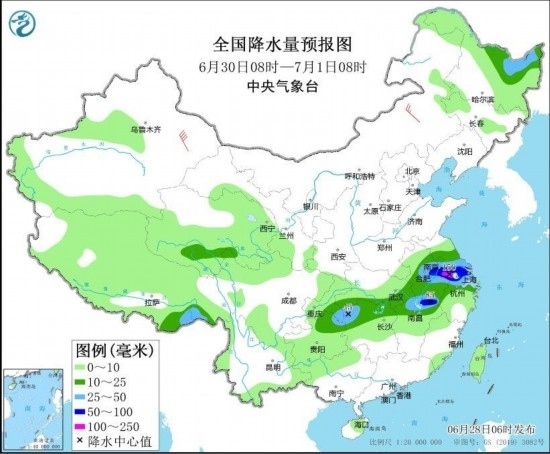 圖4 全國降水量預報圖(6月29日08時-30日08時) 圖自中央氣象臺網(wǎng)站