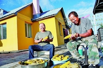 塔河縣十八站鄂倫春族鄉(xiāng)一個農(nóng)家院飯店的院子里,主人邀請來家做客的朋友一起準備晚餐。馮劍飛攝