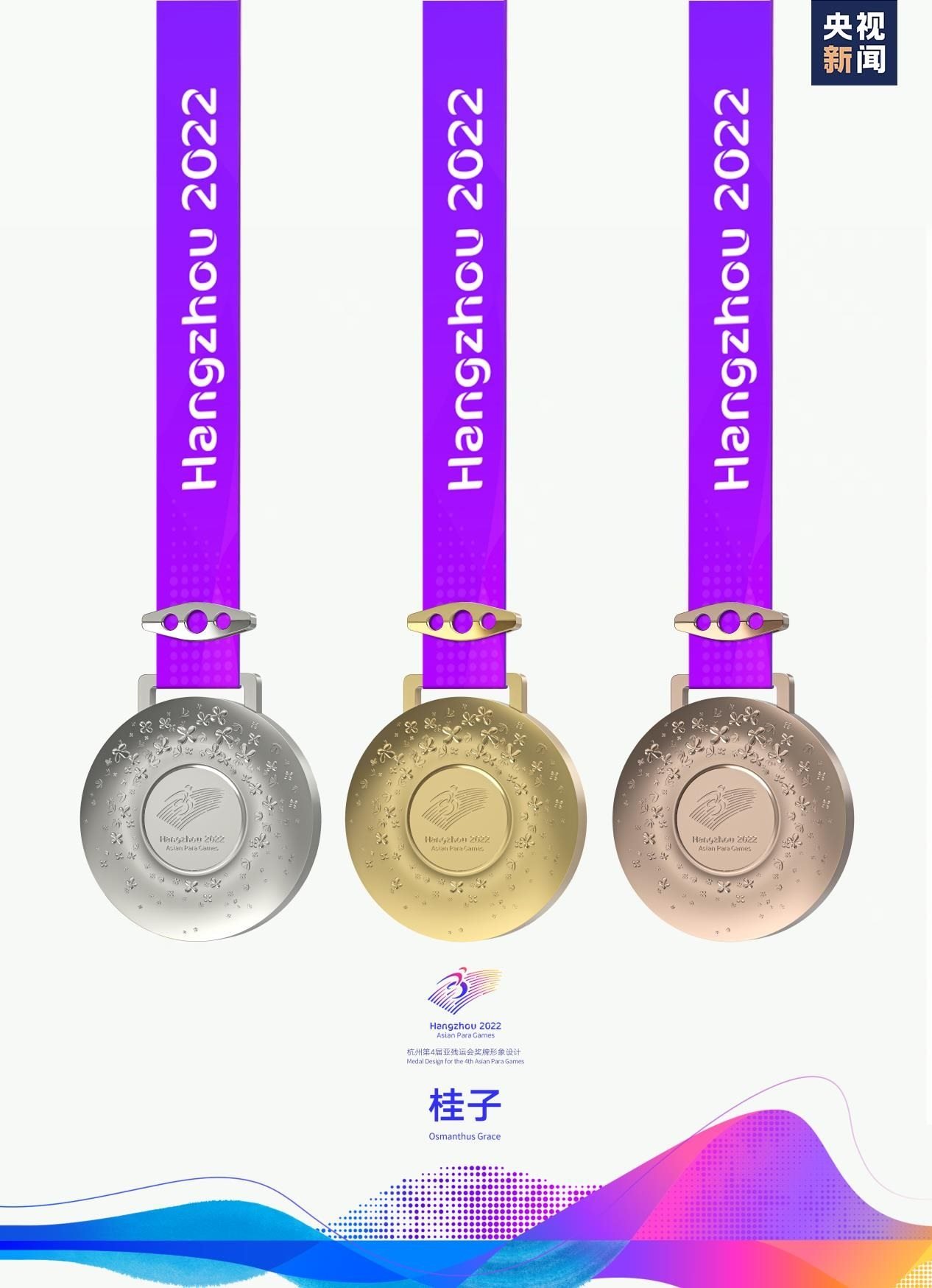 獎(jiǎng)牌取名為“桂子”,源自描寫杭州的名句“山寺月中尋桂子”,寓含江南意境和浪漫色彩。系繼會(huì)徽“向前”,吉祥物“飛飛”,色彩系統(tǒng)“潤(rùn)澤”,火炬“桂冠”后又一杭州亞殘運(yùn)會(huì)視覺形象體系的核心元素,是亞殘運(yùn)文化美學(xué)的重要表達(dá)。