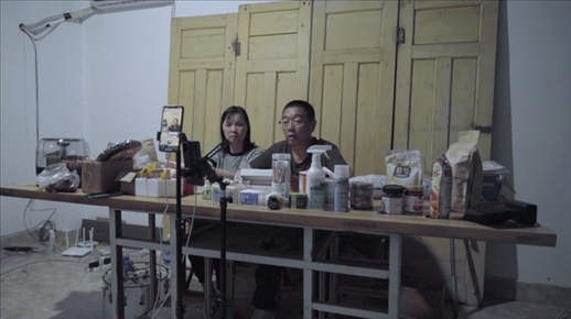 章榮高和葉麗鳳在直播間。