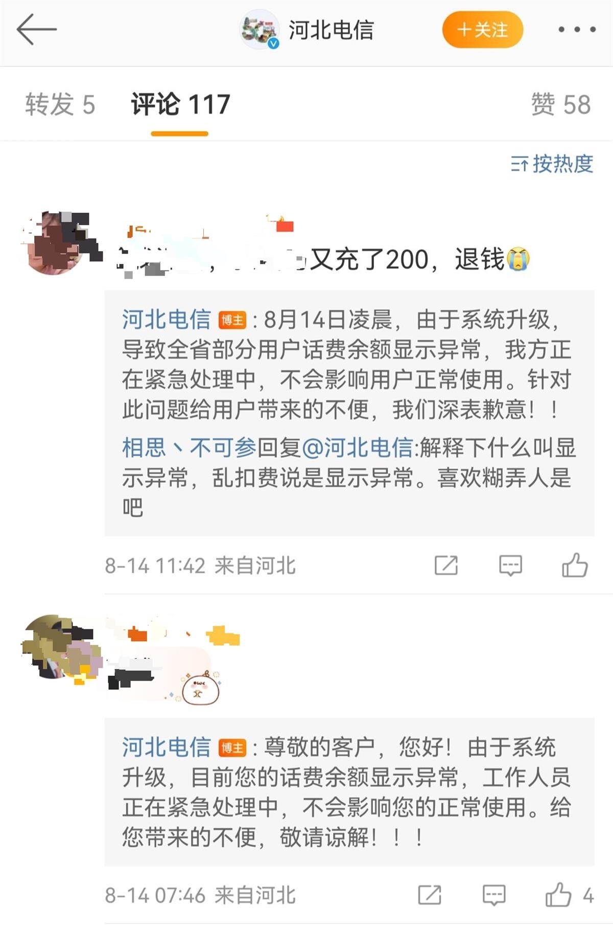 ·河北多名電信用戶稱手機莫名欠費,官方:系統(tǒng)升級導(dǎo)致,不影響通信。