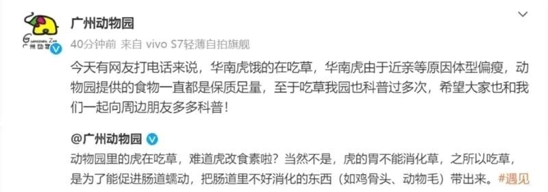 ·廣州動(dòng)物園老虎餓得吃草?園方:食物一直保質(zhì)保量。