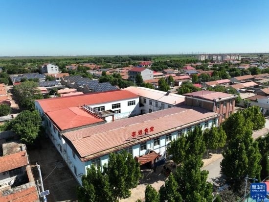 這是8月22日拍攝的青縣金牛鎮(zhèn)大鵓鴿留村孝老食堂(無人機照片)。