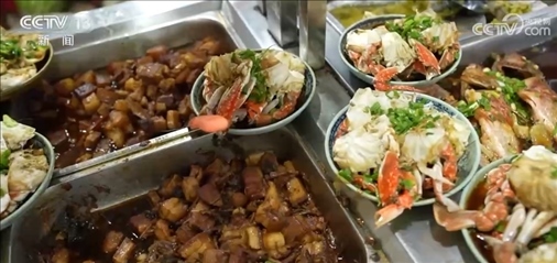 晚上9點多,寧波市鄞州區(qū)“的士大食堂”里的飯菜依然冒著熱氣,客人你來我往,有的剛收工,有的剛上班。飯店里的菜品仍在不斷上新。