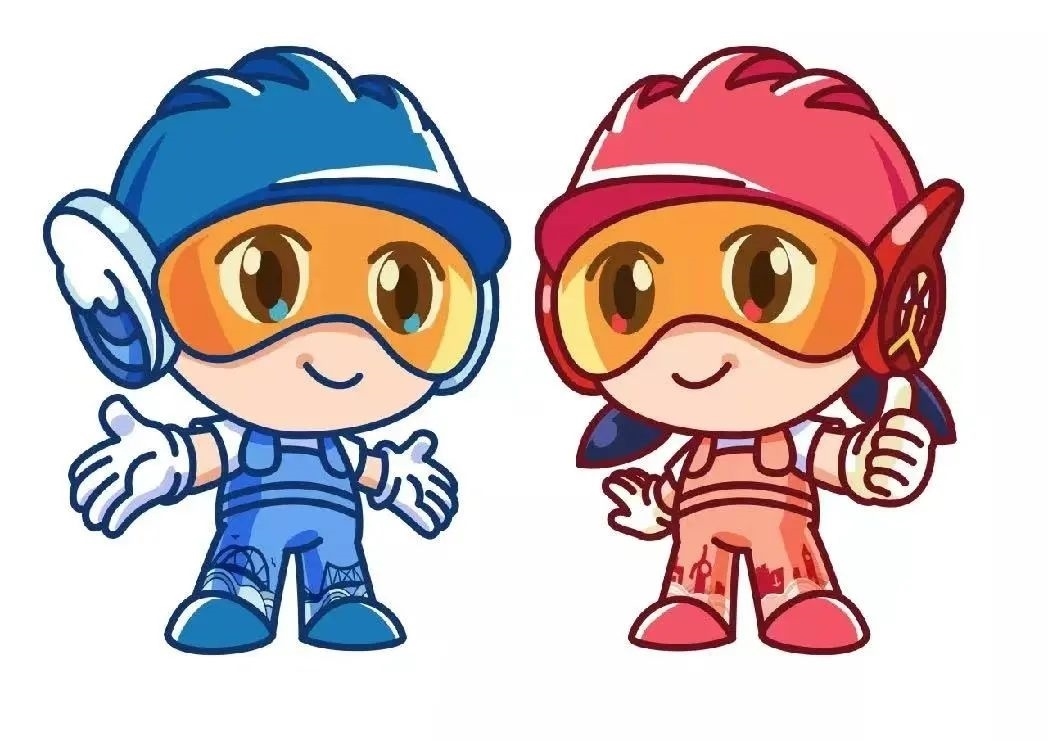 本屆大賽的吉祥物為“天天、津津”,形象為“一男、一女”兩個青年人物的造型,具有青春、活力、向上的鮮明特點,色彩以藍色、紅色為主色調(diào),突出“技能藍、青春紅”,與大賽會標“技”字標識相呼應(yīng);服飾上通過統(tǒng)一的工裝服、安全帽、護目鏡、藍牙耳機等外形設(shè)計,形象鮮明地展現(xiàn)新時代技能人才的外表特征;通過人物專注自信的表情和張開雙臂、舉手點贊等形態(tài),凸顯了技能人才“力爭上游、奮勇拼搏”的精神面貌和天津人民“自信包容、樂觀好客”的性格特質(zhì)。同時,通過摩天輪造型耳機、特色橋梁、港口、天津新老標志性建筑等形象設(shè)計,展現(xiàn)天津的城市元素。