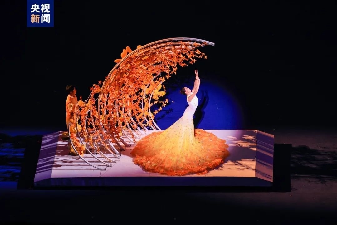今晚的“大蓮花”,處處見桂花,時時聞得到桂花香。一朵“金桂之花”到22組金桂花團,從分散到匯聚,時而形成流水,時而形成拱橋,最終將在空中形成巨大的“金桂花冠”,向每一位運動員傳遞“逐夢折桂”的美好寓意。
