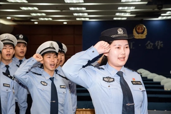 11月6日,浙江金華,警號057701重啟儀式在金華市公安局舉行,00后新警傅蕓繼承了父親傅煜華的警號。2013年,年僅39歲的傅煜華倒在工作崗位,被追授“全國公安系統(tǒng)二級英?!薄8凳|說,她將替爸爸續(xù)寫完他的從警路。