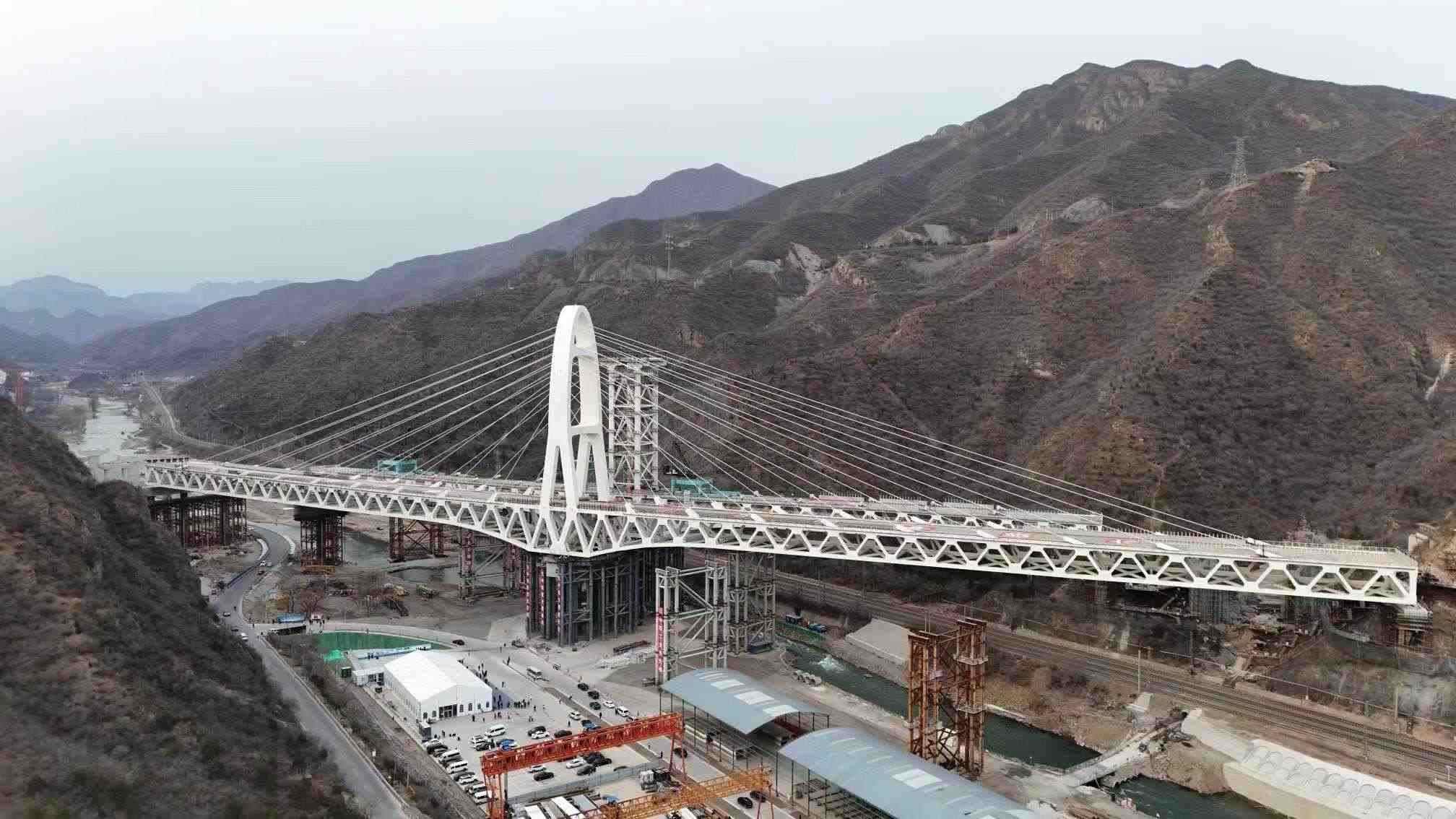 11月28日下午15時55分,國道109新線高速公路安家莊特大橋上跨豐沙鐵路立交橋,歷時47分鐘,左、右幅主橋高空轉體精準對位,標志著世界首例曲線鋼桁斜拉橋高空墩頂雙幅同步轉體取得成功,“中國橋”成為再次享譽世界的新名片。